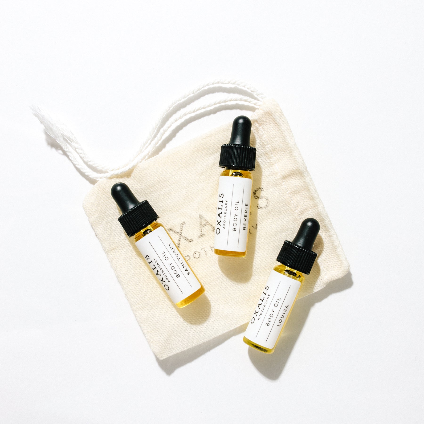 We want you to love what touches your skin. That's why we offer our Body Oil Sample kit - so you can explore, feel and fall in love with your perfect blend.