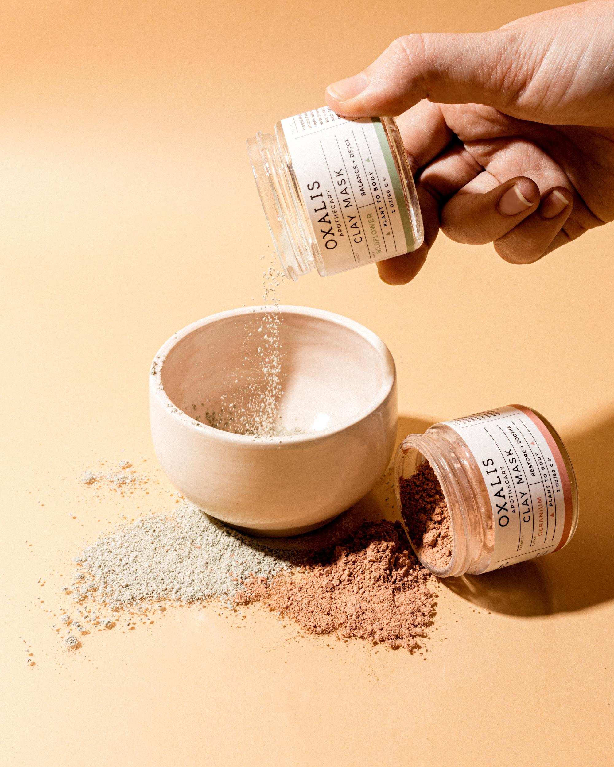 In bowl, mix a spoonful of clay (1 tbsp recommended) and a small amount of water. Add more water or clay as needed to create desired paste consistency. In place of water, try raw honey, yogurt, flower hydrosol, or aloe to create a unique mask suited to your needs. Mix clay and hydrator together with brush and apply to entire face (avoiding eyes and mouth) and neck. Rinse brush clean with water and a bit of mild soap. Bowl is top rack dishwasher safe but hand washing with warm water and soap will help extend the life of the bowl.